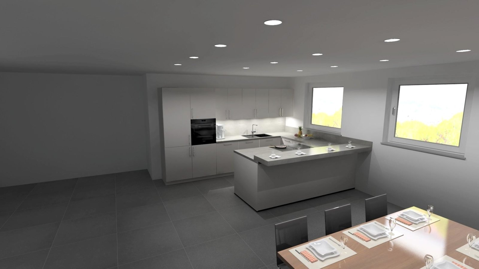 Küche: Einbauküche, offen